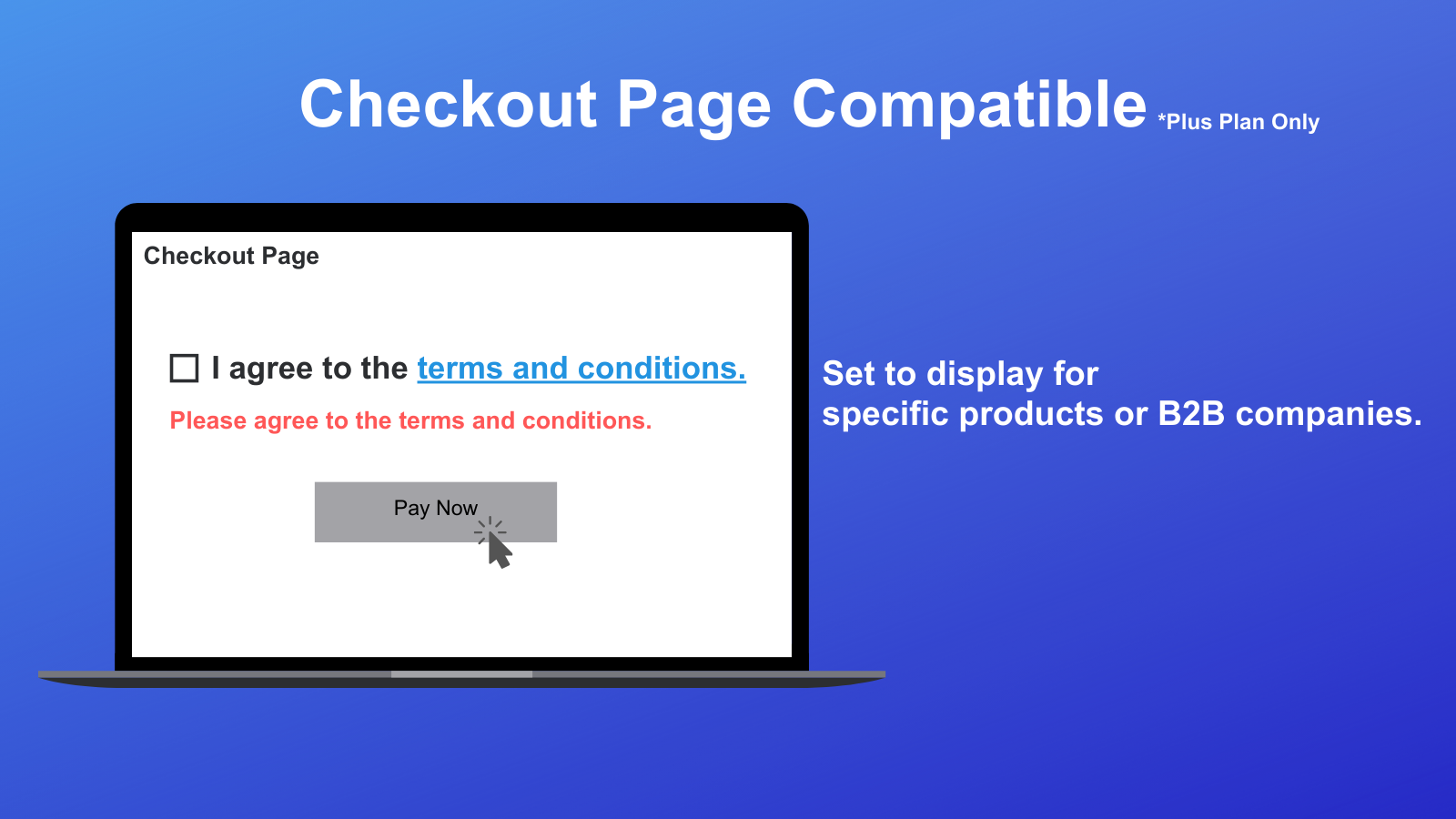 Easily add a terms and conditions checkbox to the Checkout, Cart, and Product page.