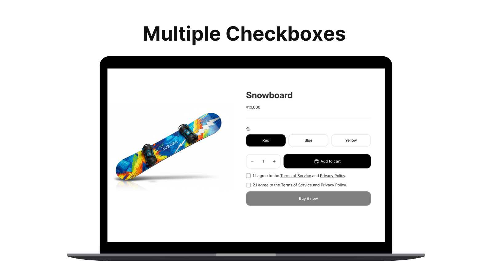 Add consent checkboxes in a few clicks. Works on product pages, cart pages, and drawers. Set display rules by product, variant, or tag. Multiple checkboxes supported. Control "Add to Cart" and "Buy Now" buttons. Consent timestamps and multi-language available. Shopify Plus merchants can add checkboxes at checkout. Set conditions by product, company, country, or cart total. Hide express checkout until agreed. Compatible with latest themes including Horizon. Build trust and prevent issues.