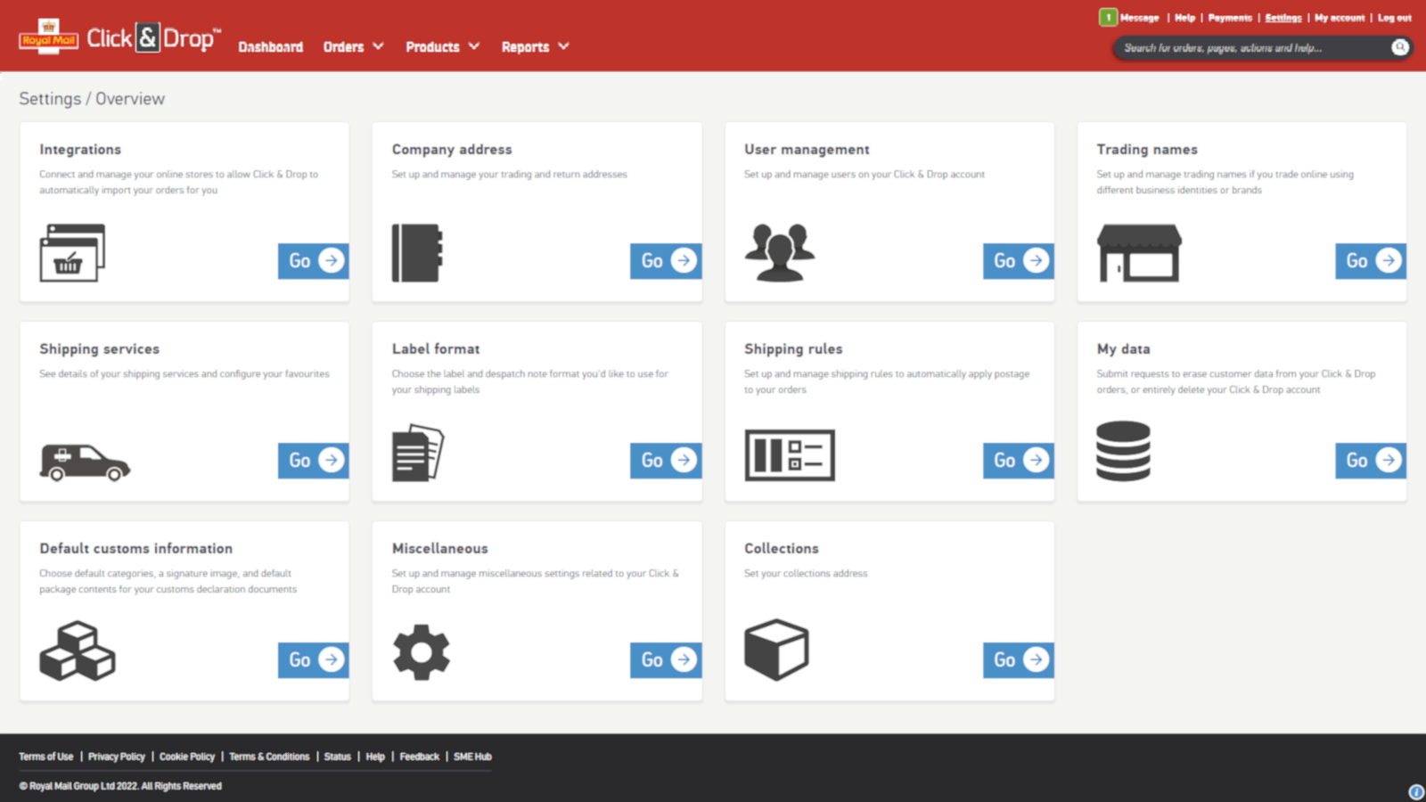 Print and pay for your postage with just a few clicks. Whether you are posting one product or a hundred, Click & Drop® allows you to print all of your labels in a single batch, and instantly select and pay for the right postage options for you. Easily pull orders from your Shopify store, as well as your eBay, Amazon and other ecommerce platforms into Click & Drop® to help you keep track of every sale and shipment you make, and help you to get your packages out of the door in no time.
