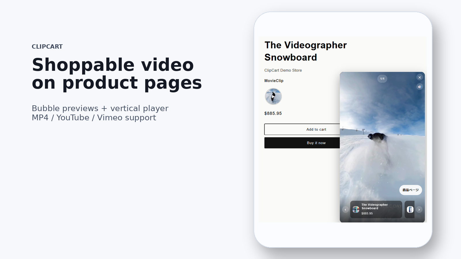 ClipCart adds a short video player to product pages, helping shoppers quickly understand fit, detail