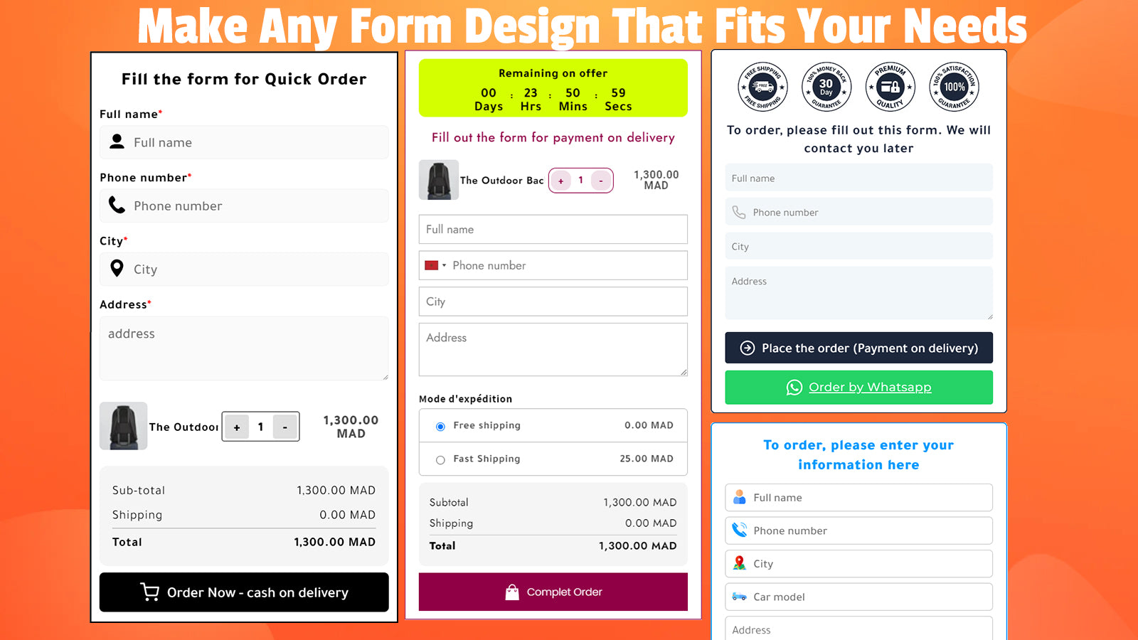 Cash on Delivery Order Form with Shipping, Discounts, Upsells