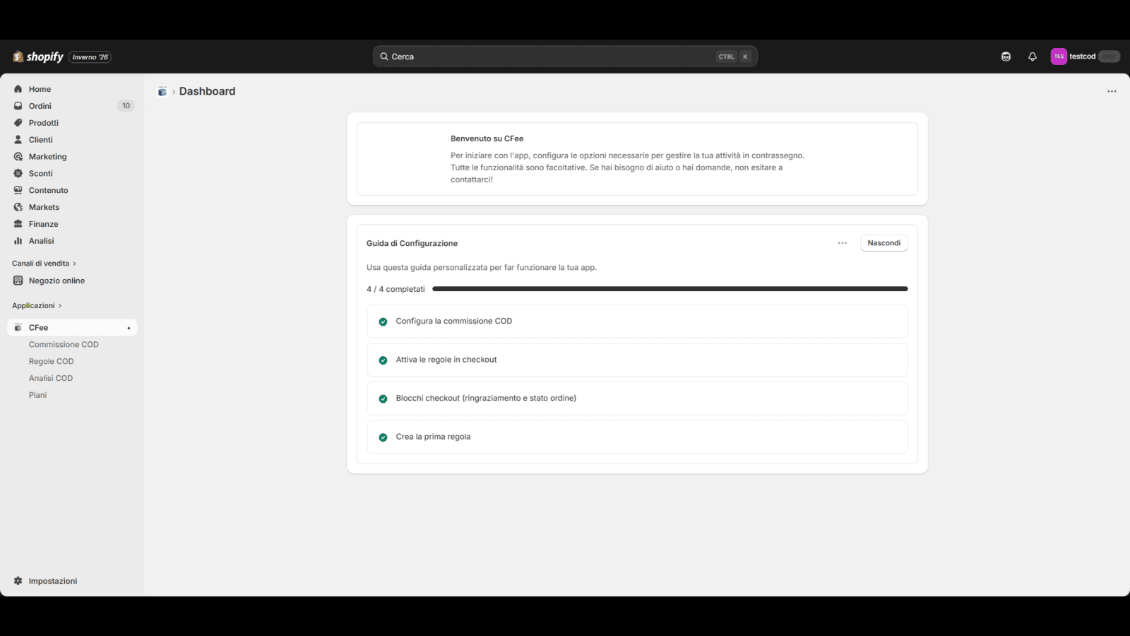 CodPLUS applica una commissione al contrassegno. Gestisci quando il COD è visibile al checkout.