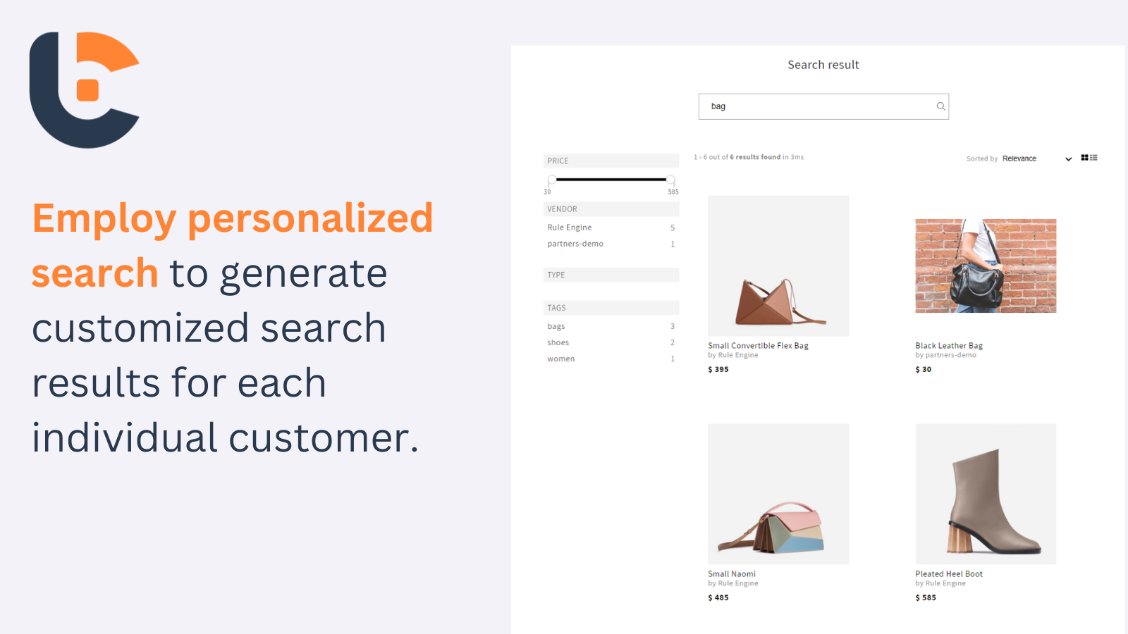 Elevate your online store sales with our tailored AI search bar and personalized product filters.