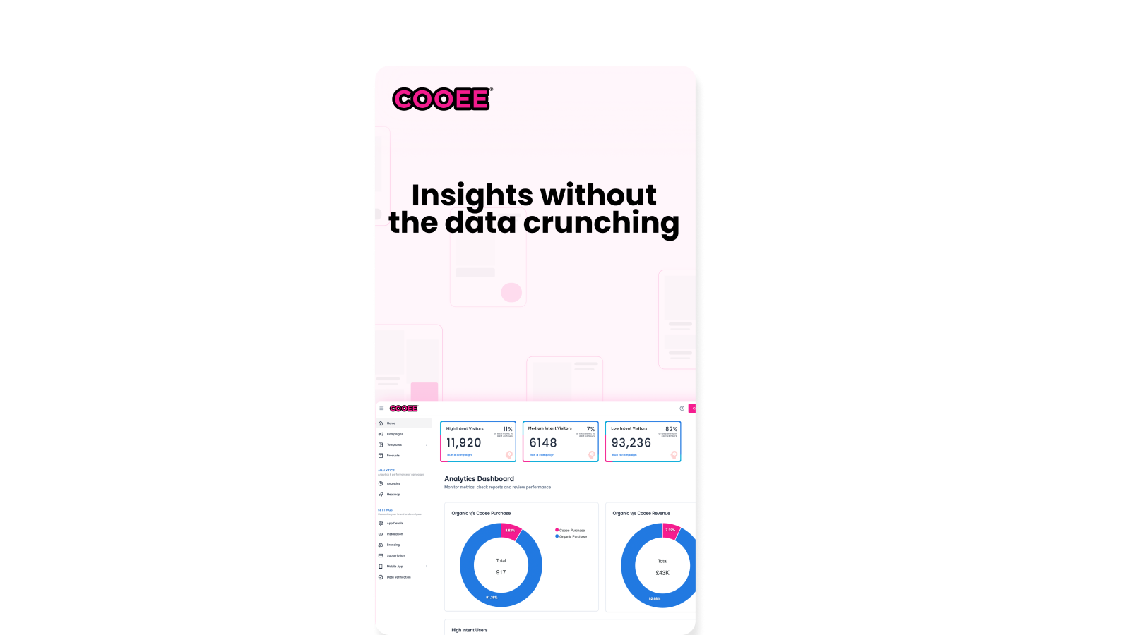 Cooee AI powered popups are unlike the usual popups, they are driven by real-time intent of each visitor to your Shopify store. Are you tired of spending a fortune to drive traffic to your store, only to treat all visitors the same? With our technology, we analyze each visitor's intent on your Shopify store in real time to better understand where they are in the customer journey, categorizing visitor activity as low, medium, or high, and uniquely engaging with them to minimize funnel leakage.
