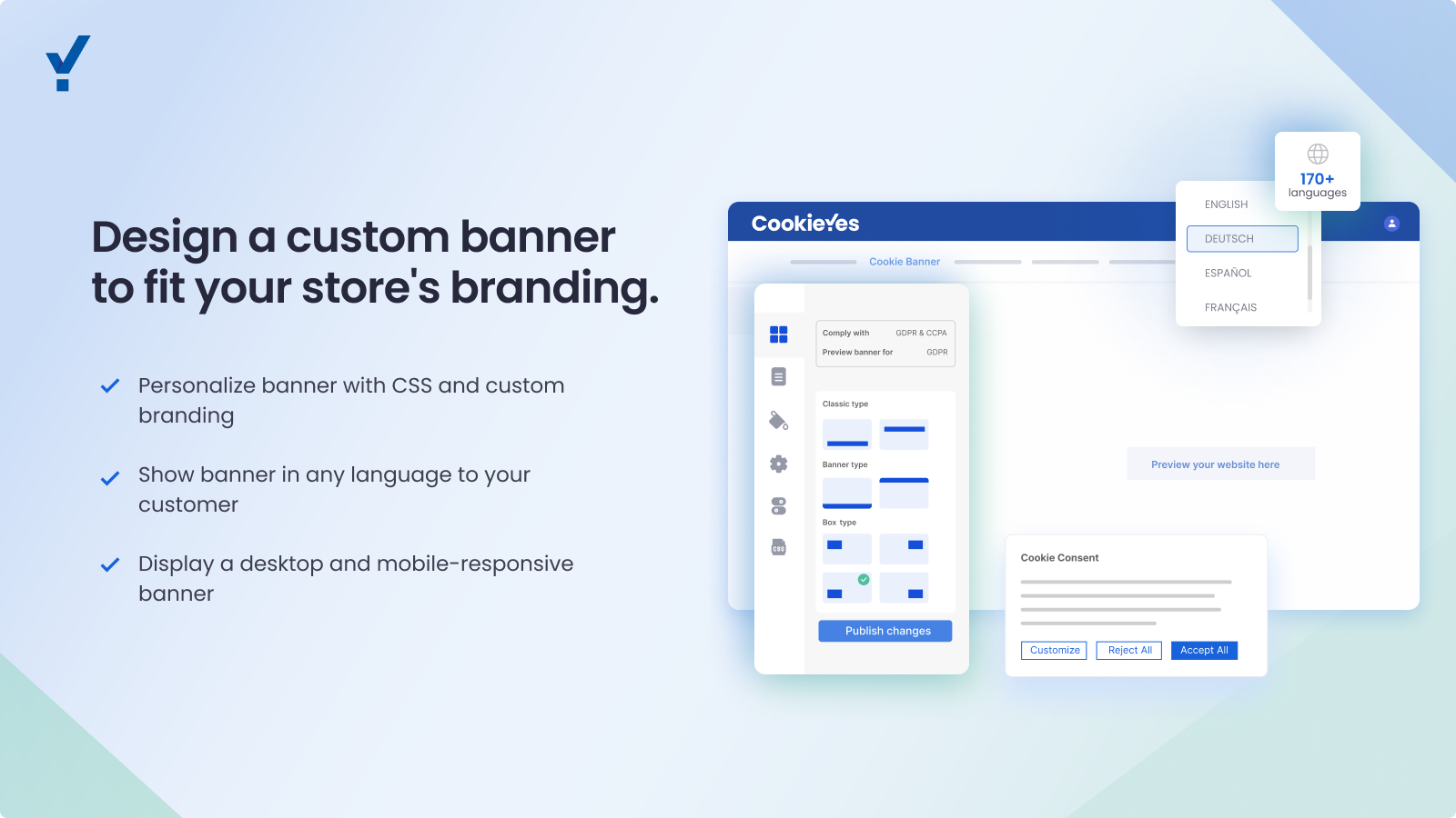 EU Cookie banner, cookie consent for GDPR, CCPA compliant