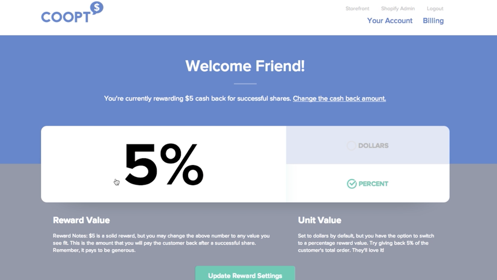 Our app allows a discount to be applied to an order after purchase when a customer shares on Facebook. Unlike other referral apps, Coopt does not require the customer to create an account for a future discount, they simply have the discount applied immediately after their Facebook post has been confirmed. With more customers sharing your store, it builds loyalty, drives traffic, and incentives customers to refer your store to their friends in a non-intrusive way.