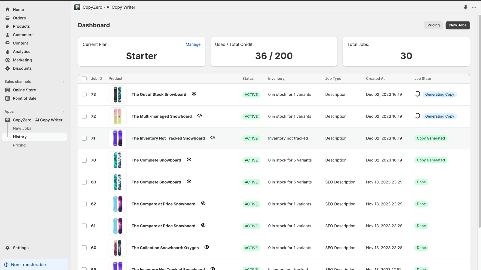 CopyZero boasts a range of remarkable features designed to enhance your productivity. Harness the power of instant content creation, eliminating the need for laborious copywriting. Seamlessly generate product/collection descriptions, SEO metadata, and image alt text (SEO friendly) with a single click. Say hello to engaging content that resonates with your customers and boosts conversions. At the same time, enjoy the freedom to customize generated copy to match your brand's unique tone and style.