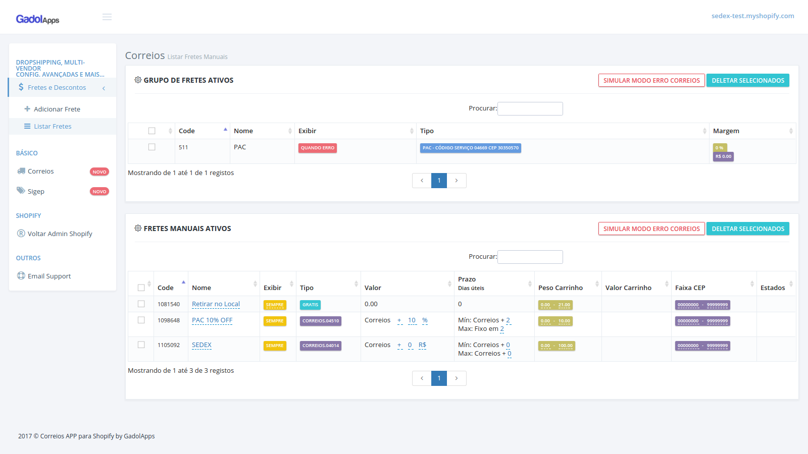 Automatic freight calculation at checkout for Correios (having or not contract) and other carriers.