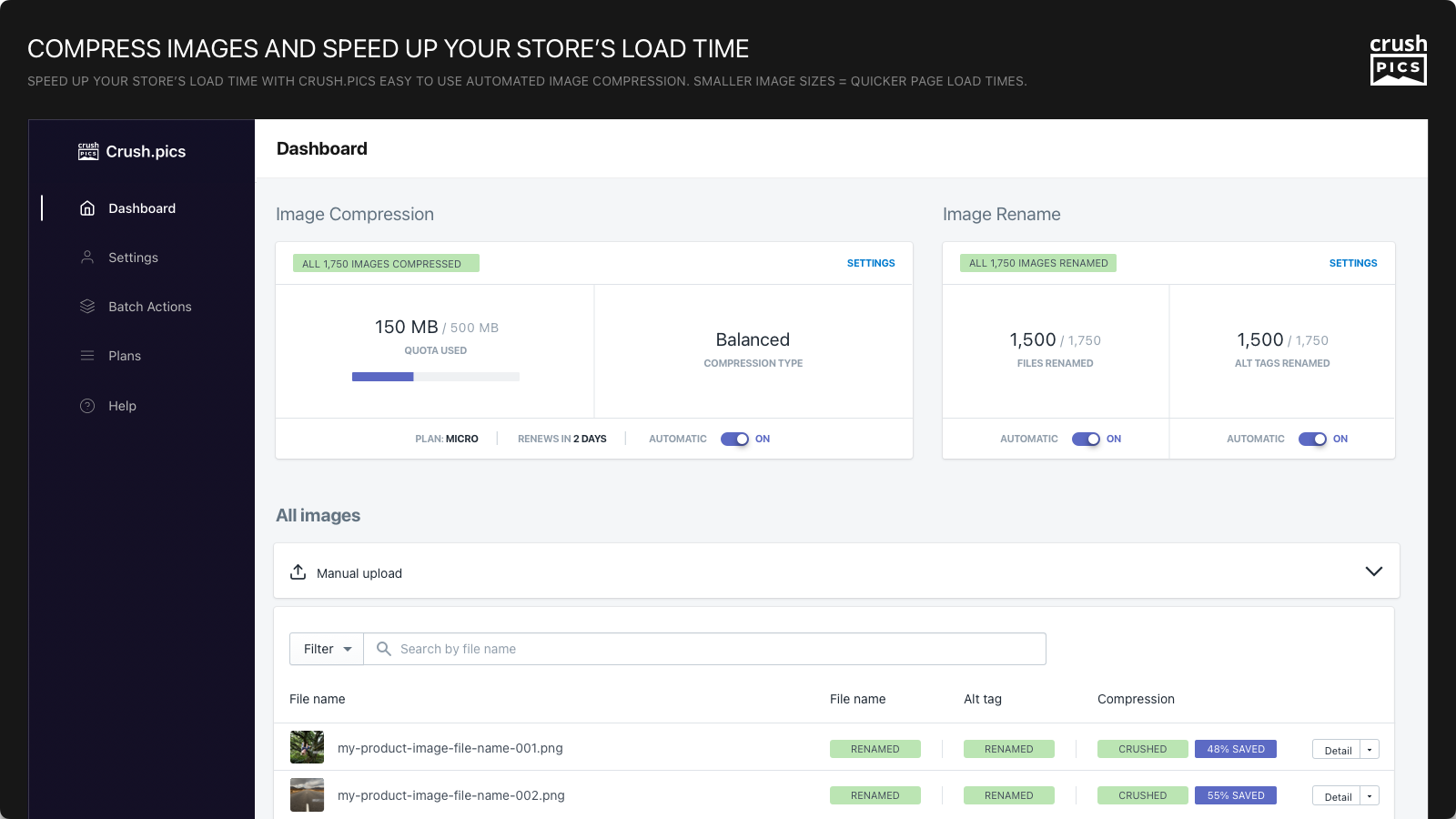 Speed up your shop & boost image SEO with Crush pics image optimizer & image renaming tools