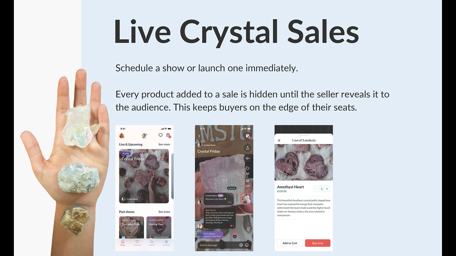 Crystals Live: Elevate your store with live shows and seamless product listings.