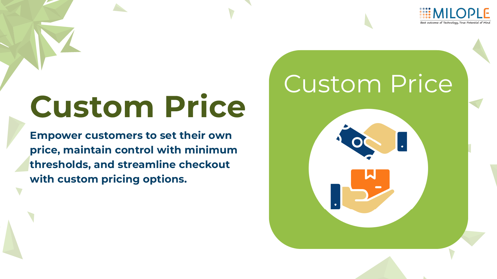 Custom Price enables customers to checkout at their chosen price, giving merchants flexible pricing