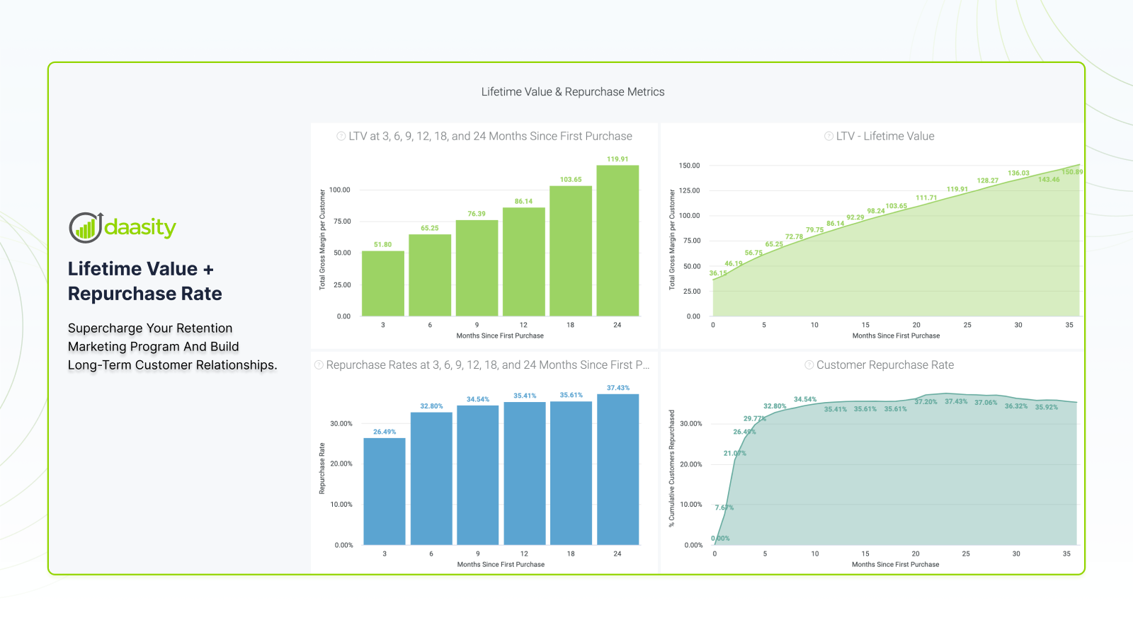 Analytics & Reports: Lifetime Value, Profit, Marketing KPIs...