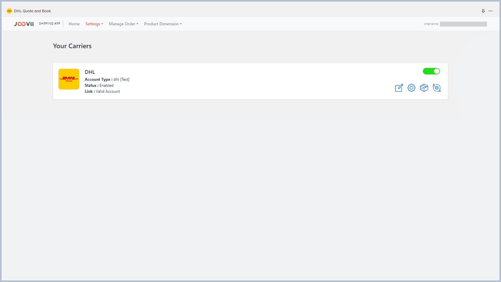 This app integrates with DHL to allow merchants to quote and book using their account.