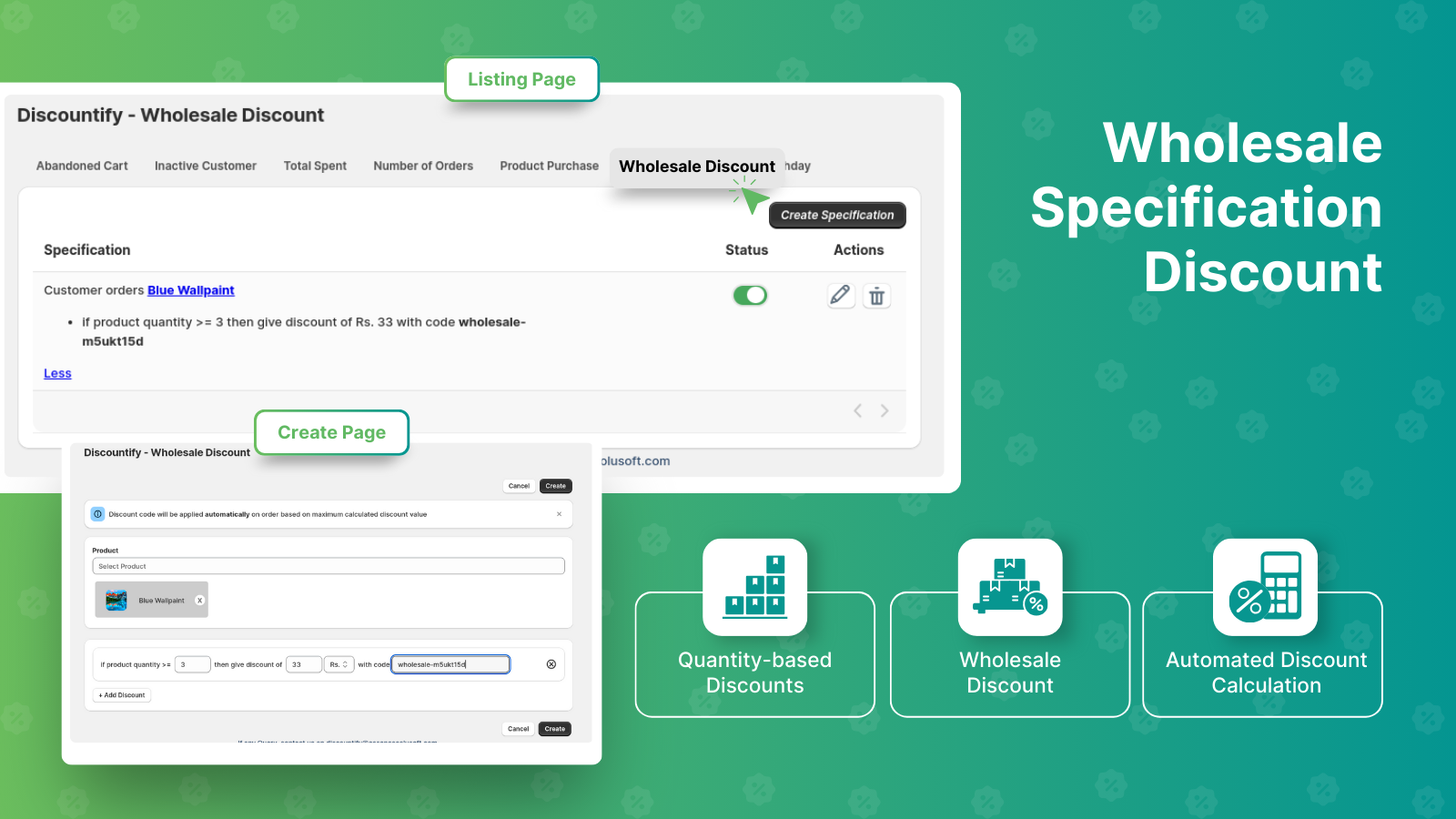 Bring back the customers, offer discounts, and boost your traffic and revenue. An easy-to-use and unique discount offering Shopify application that helps in reduce customer churn rate and increase your online sales and eCommerce traffic. Discountify app is developed with in-detail research of eCommerce sales and customer buying patterns. This app will help store owners in sending personalized discount codes to customers based on their activities identified by the set of rules.