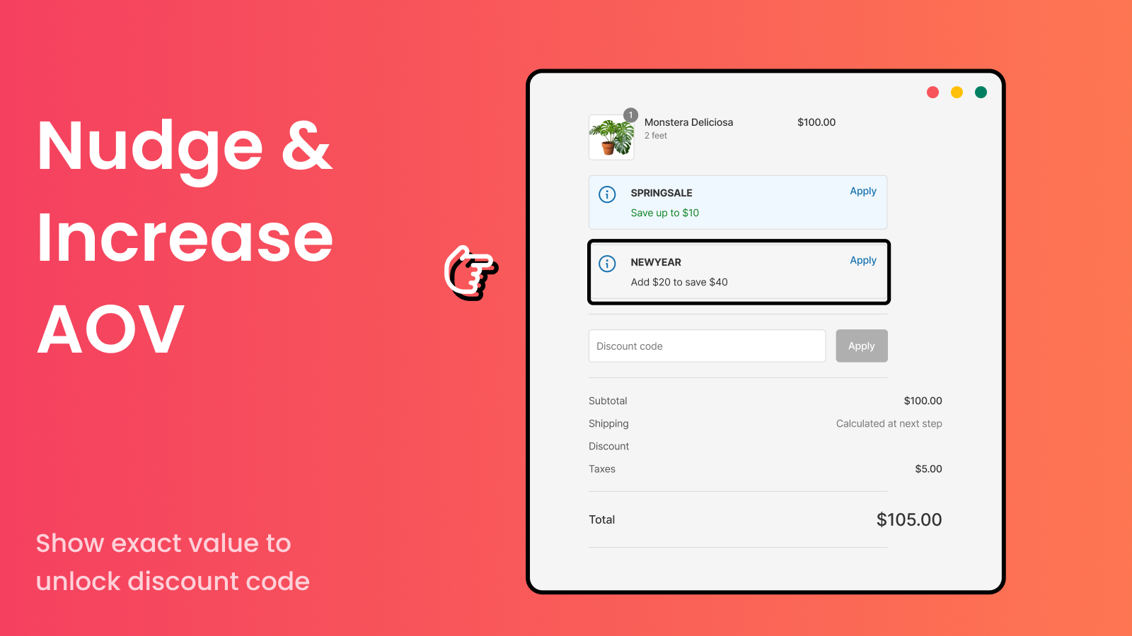 Show the right discounts at checkout. Increase checkout completion and AOV.