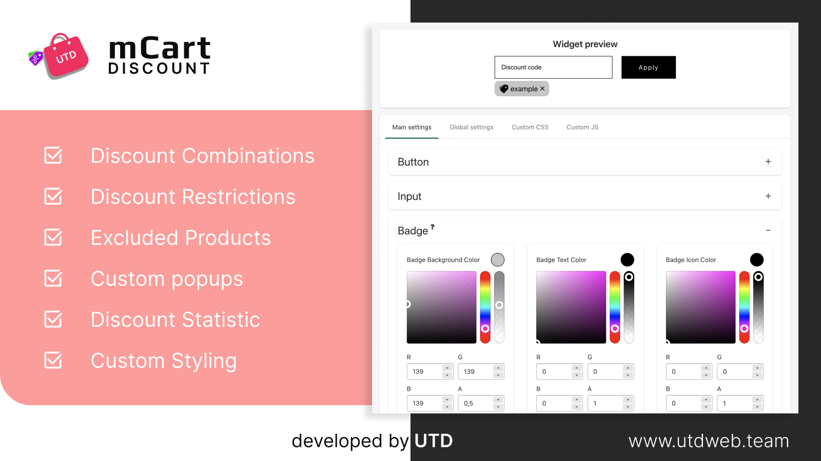 Applying a discount code to your shopping cart is critical to boosting your sales rate and good customer service. Our application provides the ability for users to apply the discount code in the shopping cart and combine discount codes. Now the user can enter several discount codes and apply them to one cart, the discount amount will be summed up, and the user does not even need to go to checkout to apply the discount code!