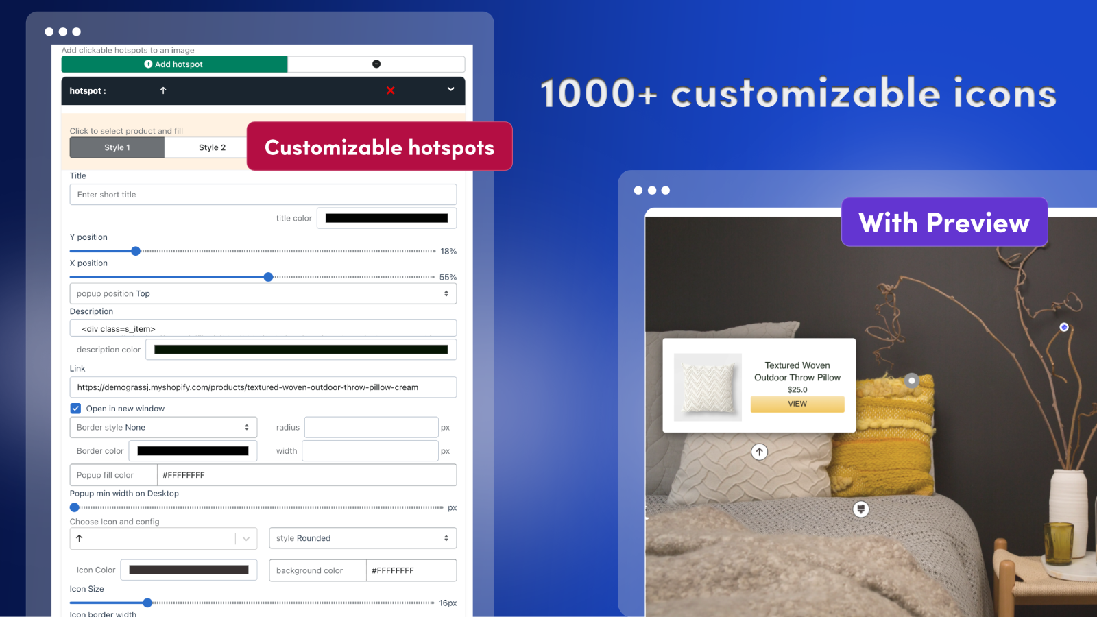 Use shoppable images with Hotspots to increase sales and drive revenue. Boost with image mappers