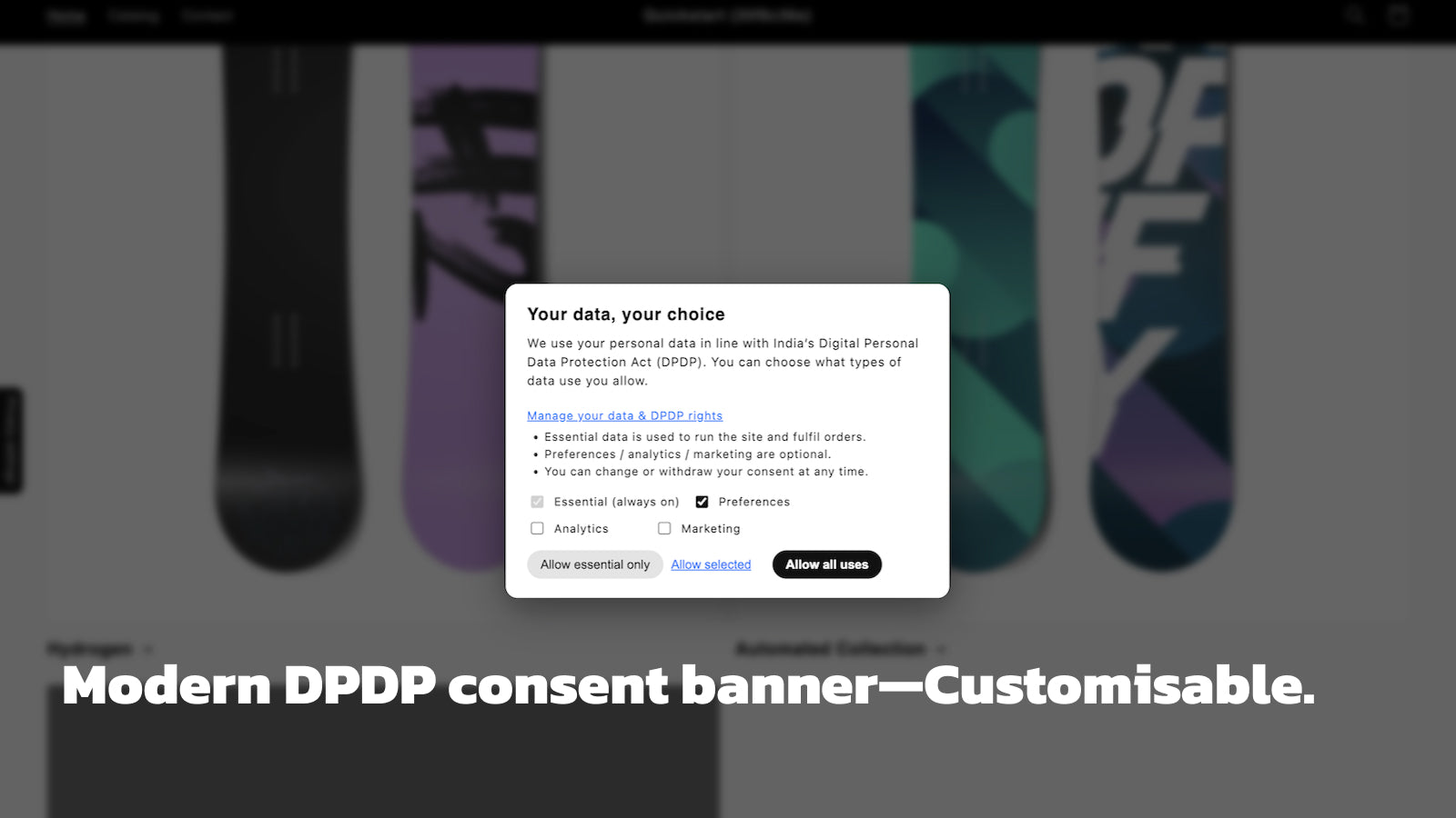 DPDP-ready consent, privacy center, and data requests for stores in India. Avoid thousands of fines.