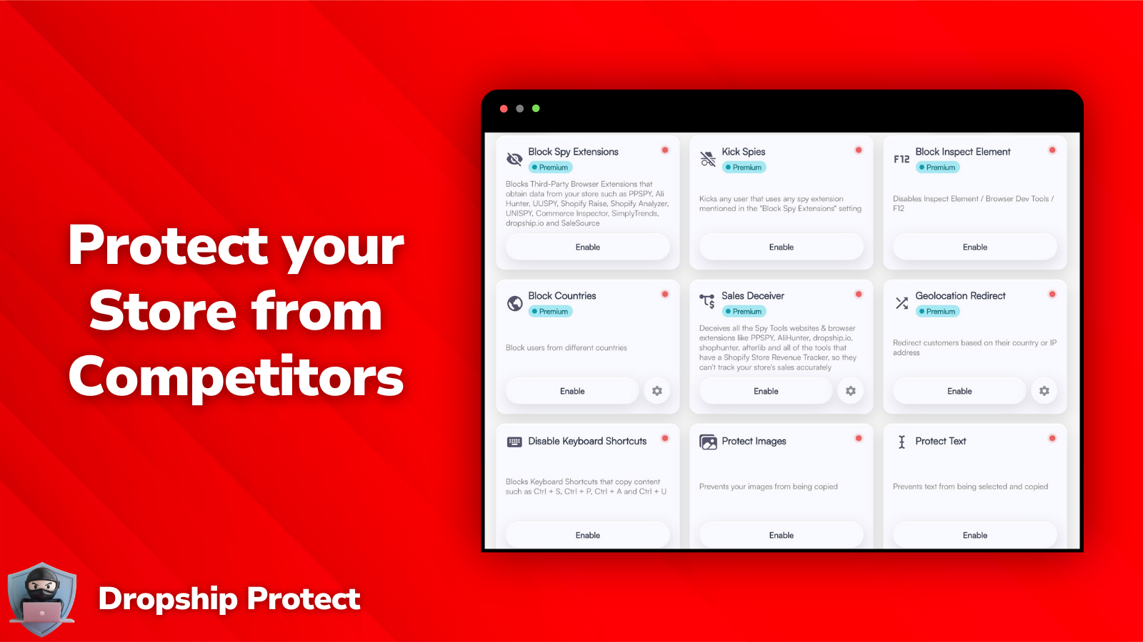 Dropship Protect keeps your store and brand assets safe from other sellers and mainly dropshippers.