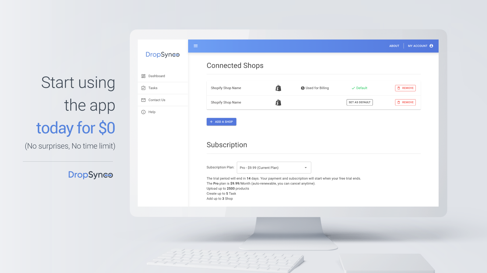 DropSynco lets you automate and manage your Shopify stores in one place via different import methods (URL, FTP, Google Drive, Dropbox, etc.) to keep them in sync. You can schedule your CSV, XLSX, XML or JSON product file(s) feed daily, weekly or monthly, keeping your Shopify stores and inventories synced at all times. You can also connect 2 or more stores to the DropSynco app to synchronize multiple Shopify store inventories or locations.