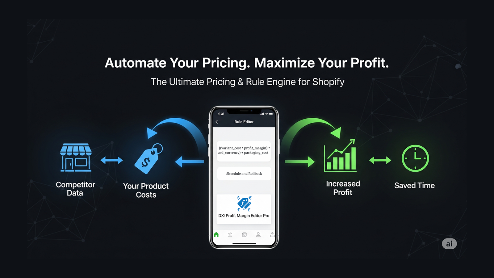 Static pricing causes you to miss profit opportunities in the fast-changing e-commerce world. This app transforms your store into a smart pricing engine. Monitor competitors, factor in your costs, and update the prices of thousands of your products in seconds by creating your own custom formulas. Take control of your pricing strategy, save time, and increase your profitability.