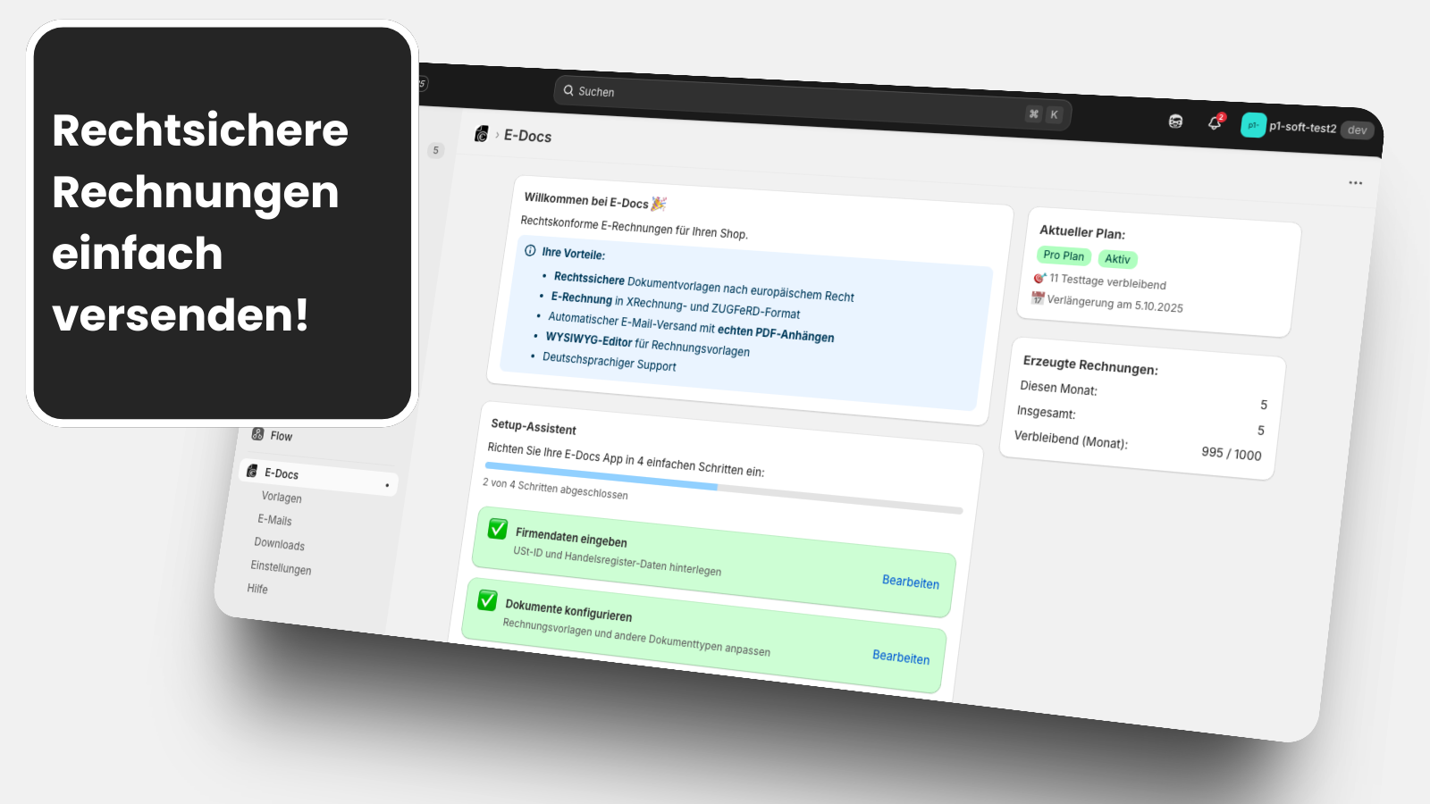 Rechtssichere Rechnungen, Lieferscheine und E-Rechnungen direkt im Onlineshop.