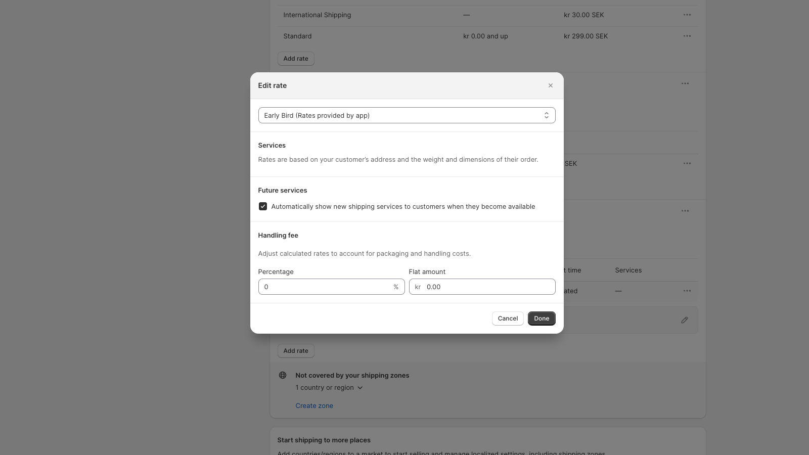 Add Early Bird as an automatically validated shipping method in your store based on postal code.