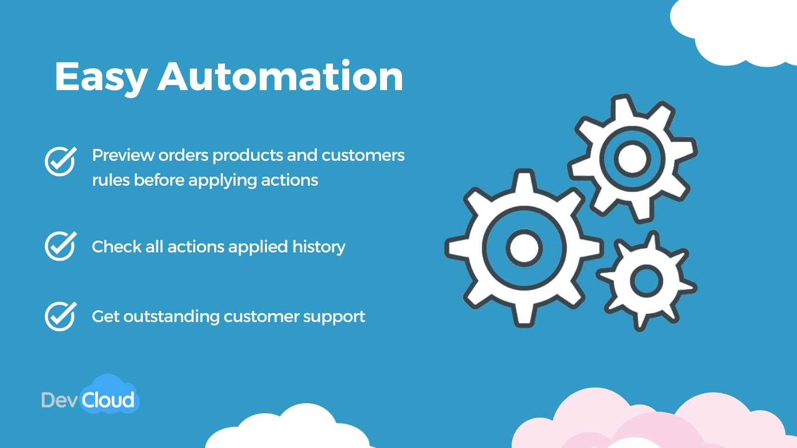 Apply actions to orders, products and customers automatically!