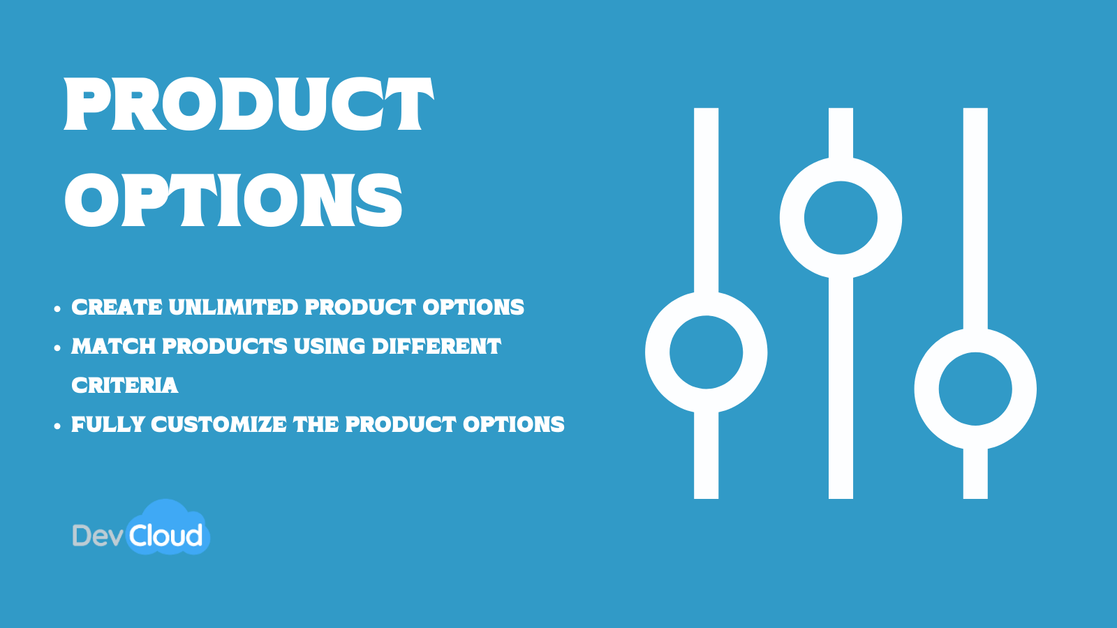 Create unlimited product options. Easily add text and numeric fields, dropdowns, swatches, date selectors, file uploaders and more! Match products using simple or complex criteria. Set any number of conditions to decide whether the options should show on each product. Select between a handful of choices to make your products options show exactly like your business need!