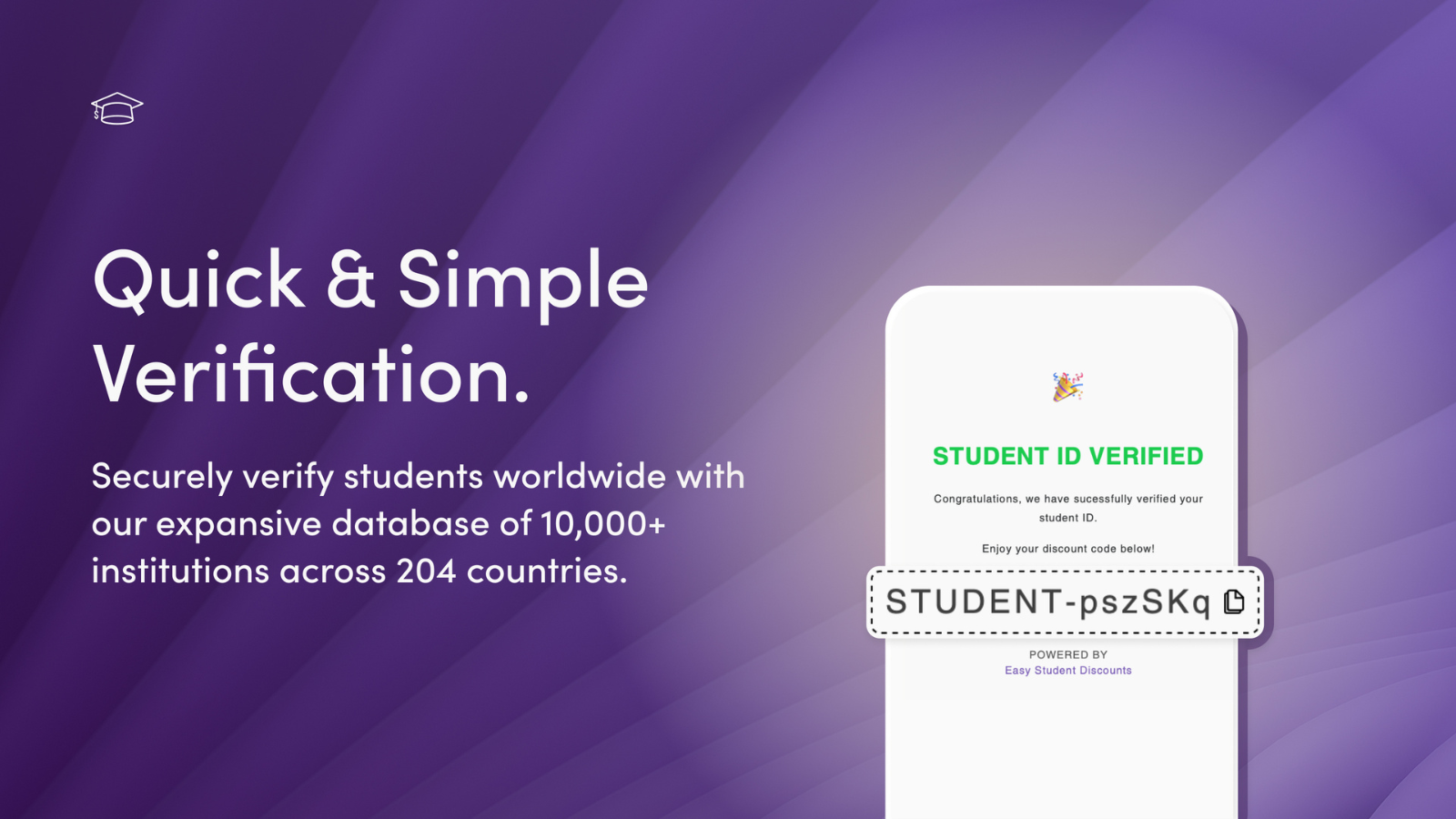 Offer quick, easy, and verified student discounts to students all over the world.