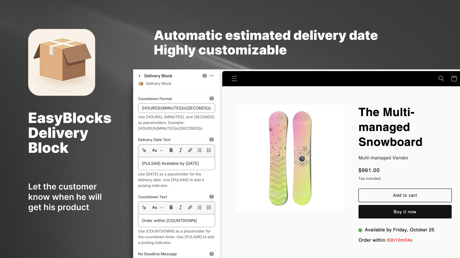Show a real-time delivery estimates and countdown timers on product pages