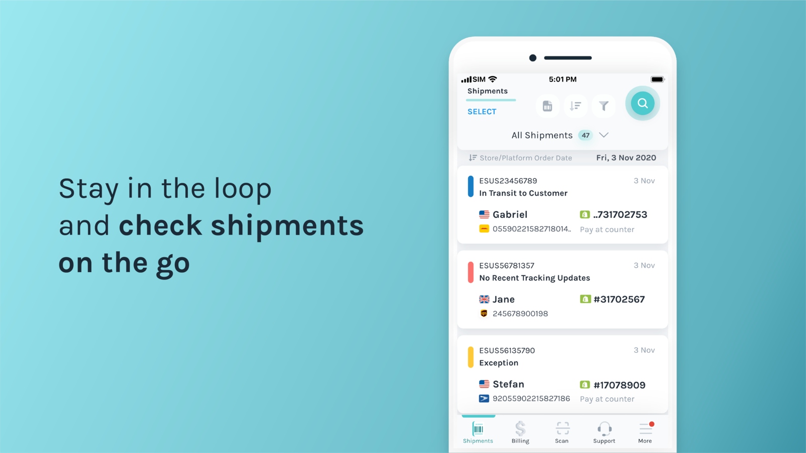 Shopify merchants trust Easyship to handle their global shipping needs - from shipping labels to returns. All with one easy-to-use account. Sync orders, automate workflows, batch print labels, share tracking information, automatic tax & duties paperwork, branded packing slips, optional prepaid returns, connect your own carrier accounts & much more. Get the lowest possible rates for every order with our network of 250+ carriers around the world, including UPS, FedEx, USPS, & DHL