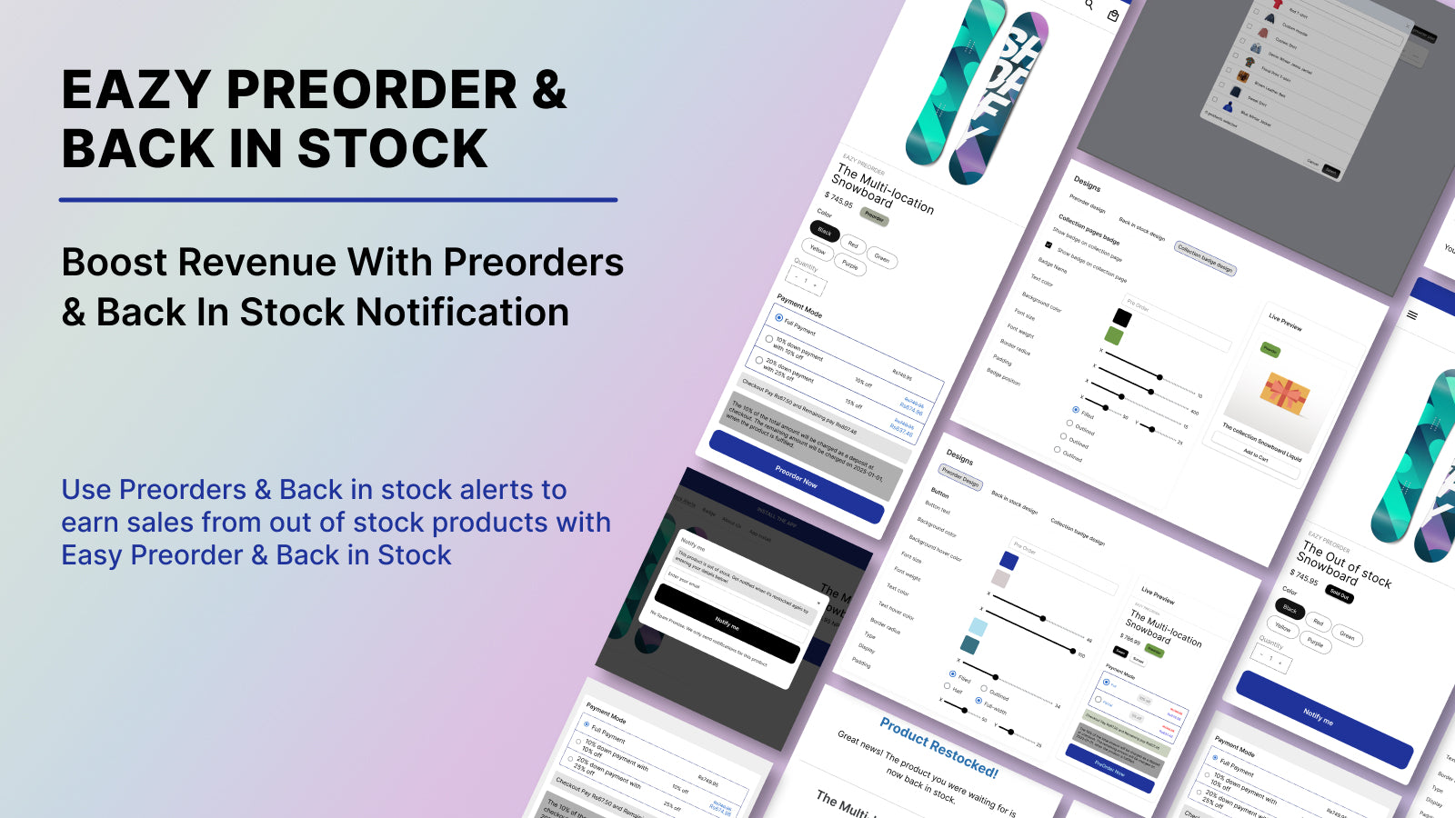 Partial Payment, Pre-order, Coming Soon, Back in stock