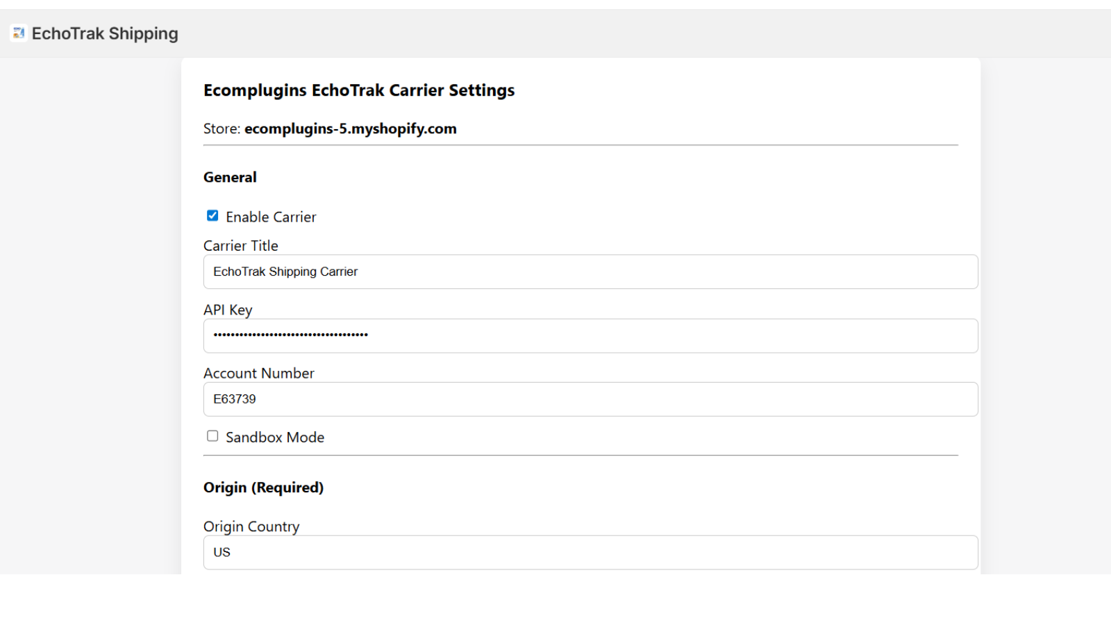 Integrate EchoTrak shipping rates into your Shopify store. Calculate real-time shipping costs based on customer address and cart products. Configure residential or commercial delivery, liftgate options, carrier limits, markups, and estimated delivery dates. Assign product-level shipping classes and package types. Manage all settings easily from app page.