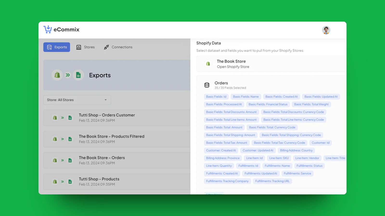 Export orders, products & more to FTP, Google Sheets, etc.