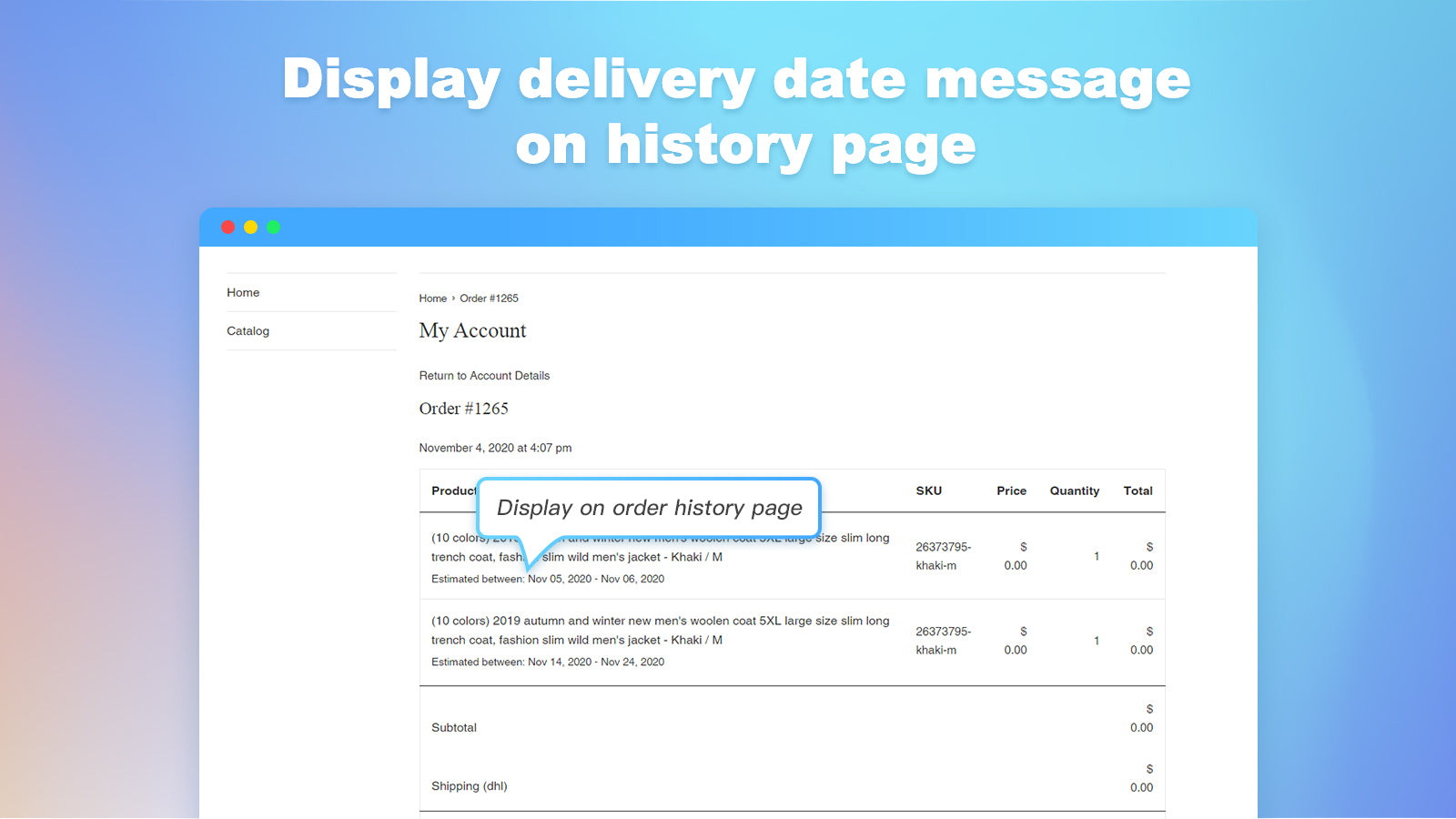 Schedule Estimated Delivery Date, Order Shipping Timer, ETA
