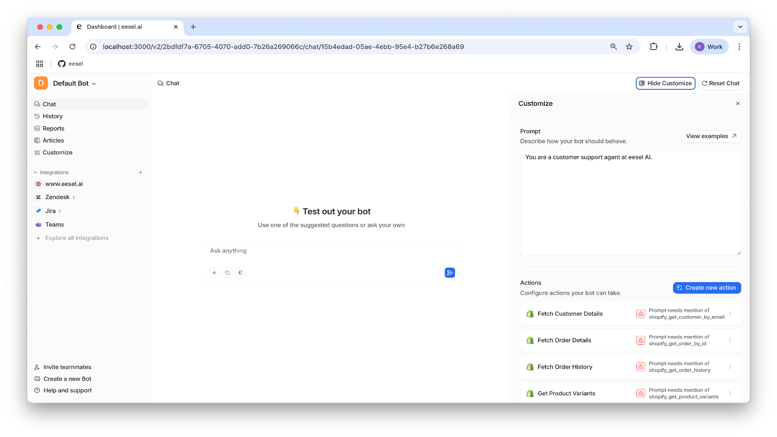 Eesel AI automates customer support for Shopify merchants by analyzing support tickets and generating instant, accurate responses using AI. By integrating directly with your store, it accesses order, product, and customer data to provide personalized replies, reduce response time, and free up your team to focus on higher-value tasks.