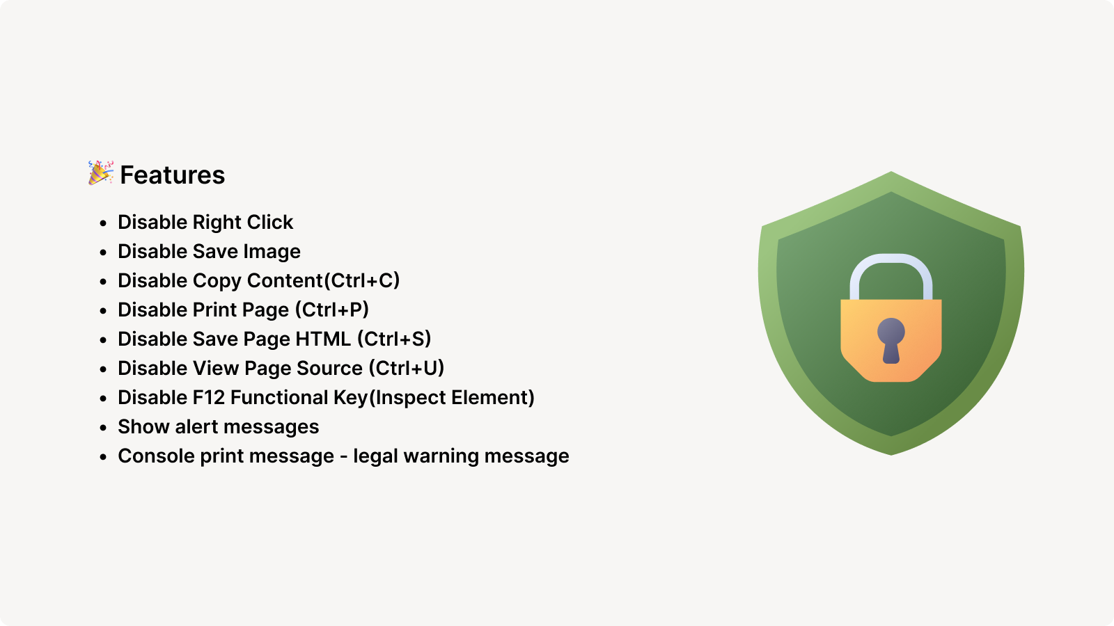 Protect your store’s content and images by disabling mouse right-click, keyboard shortcuts, and more