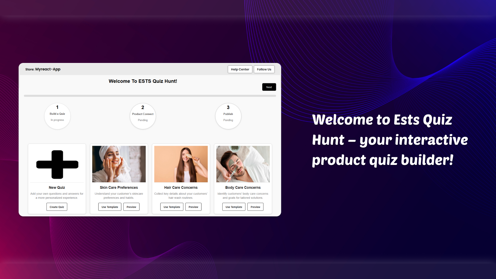 Ests Quiz Hunt helps merchants improve product discovery and increase conversions by offering interactive quizzes that guide customers to the right products. Merchants can create fully customized quizzes or use pre-built templates for faster setup. Each quiz response is linked to specific products, making recommendations more relevant and personalized to each customer’s needs.