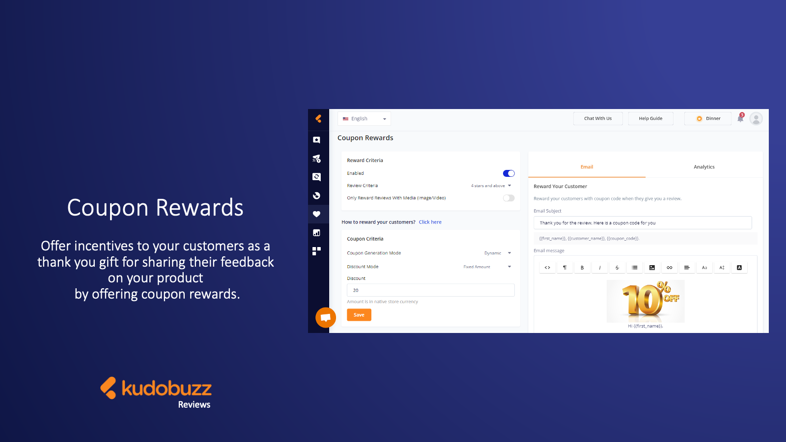 The best, fast-loading, fully customizable review app for building customer trust in your business. Display product, photo, & video reviews with beautifully designed widgets. Import reviews from Amazon, Etsy, Google, AliExpress, etc & automatically request reviews with customized email domains after order processing. Display reviews via Google Rich Snippet and Google Shopping. Generate shareable links for review requests, use coupons to incentivize customers & sync reviews among multiple stores.