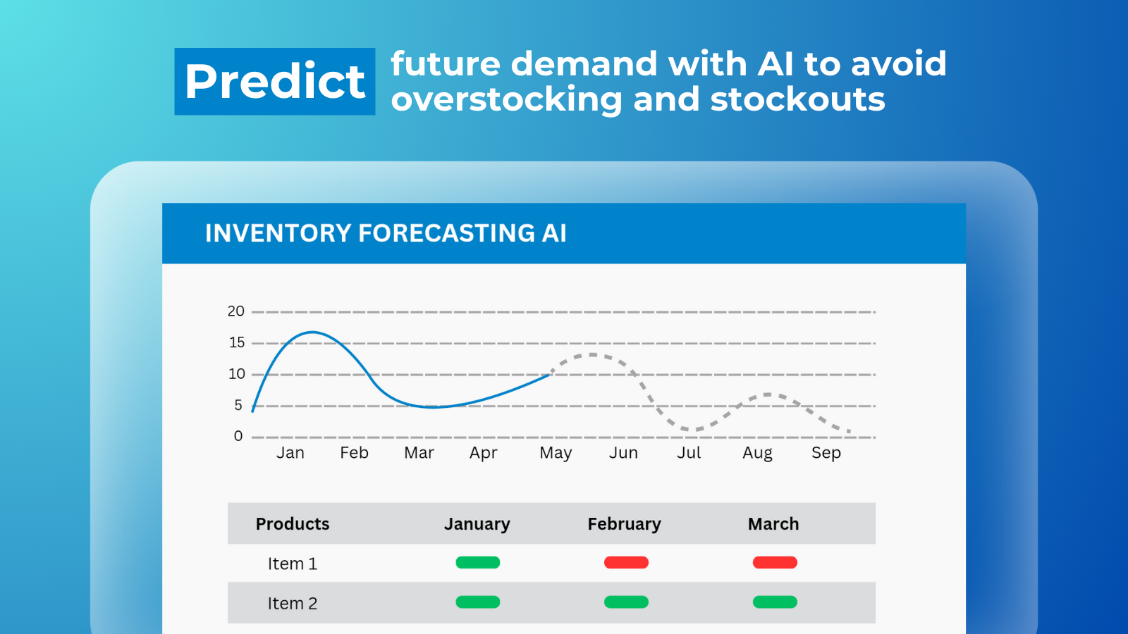 Get insights from historical sales data with AI powered monthly sales predictions for each product.