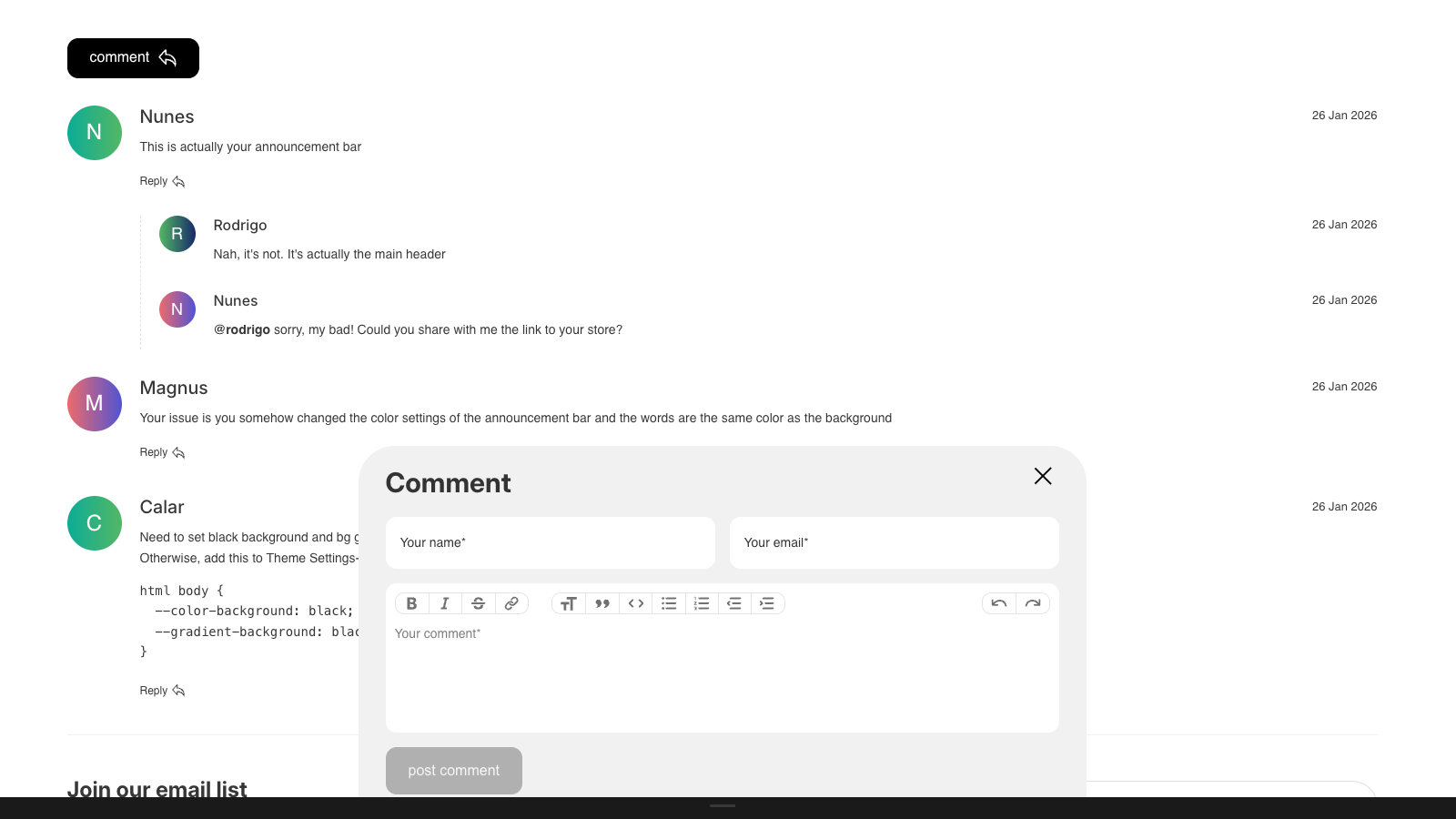 Ez Posts & Comments helps you build an active community on your Shopify store. Customers can create topics, post comments, and join discussions using beautifully designed forms that fit seamlessly into your storefront. A simple admin dashboard makes it easy to manage and moderate all content, helping drive more traffic, gather customer insights, and create new opportunities to drive sales.