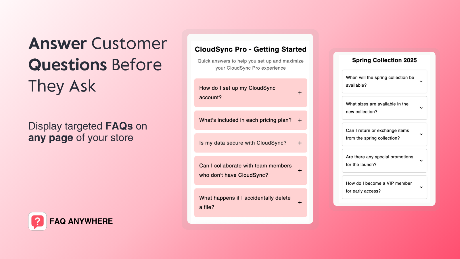Display targeted FAQ campaigns anywhere on your store to reduce support tickets.
