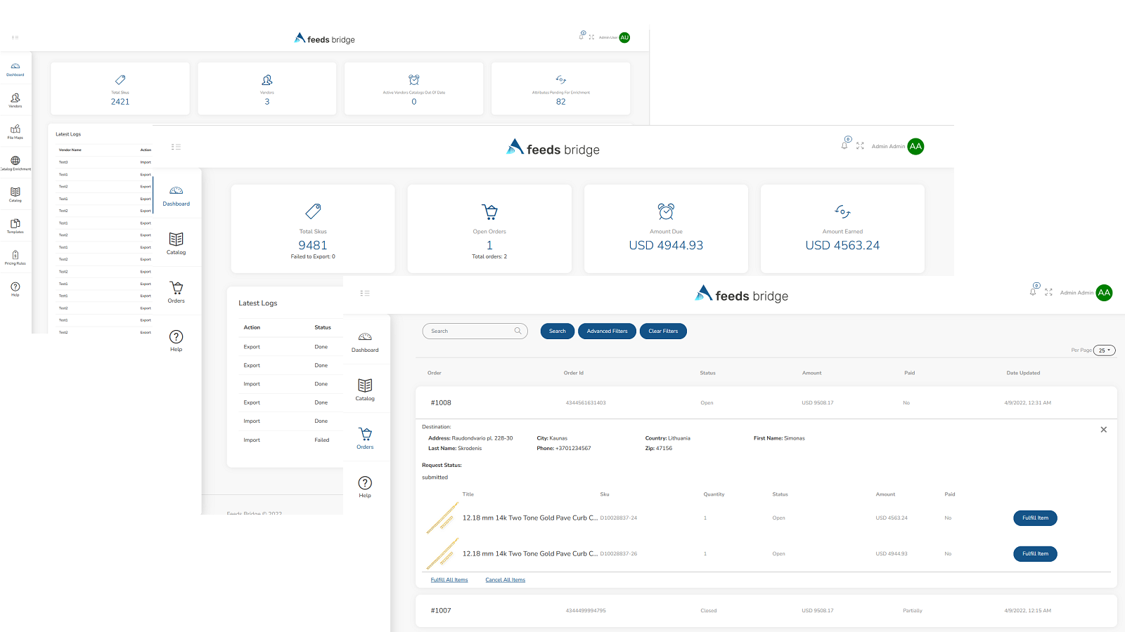 Feeds Bridge is what you need if you want to import products from multiple vendors. Process Excel, CSV, TAB/PIPE delimited and XML files. Each vendor file has it's own file map, meaning you can import products from many vendors at the same time, mappings rules will ensure that all new products gets imported into your store in the same format. Manage Pricing of each vendor using pricing rules. Grant vendor access so they can review their catalog, fulfill their orders and track payment status.
