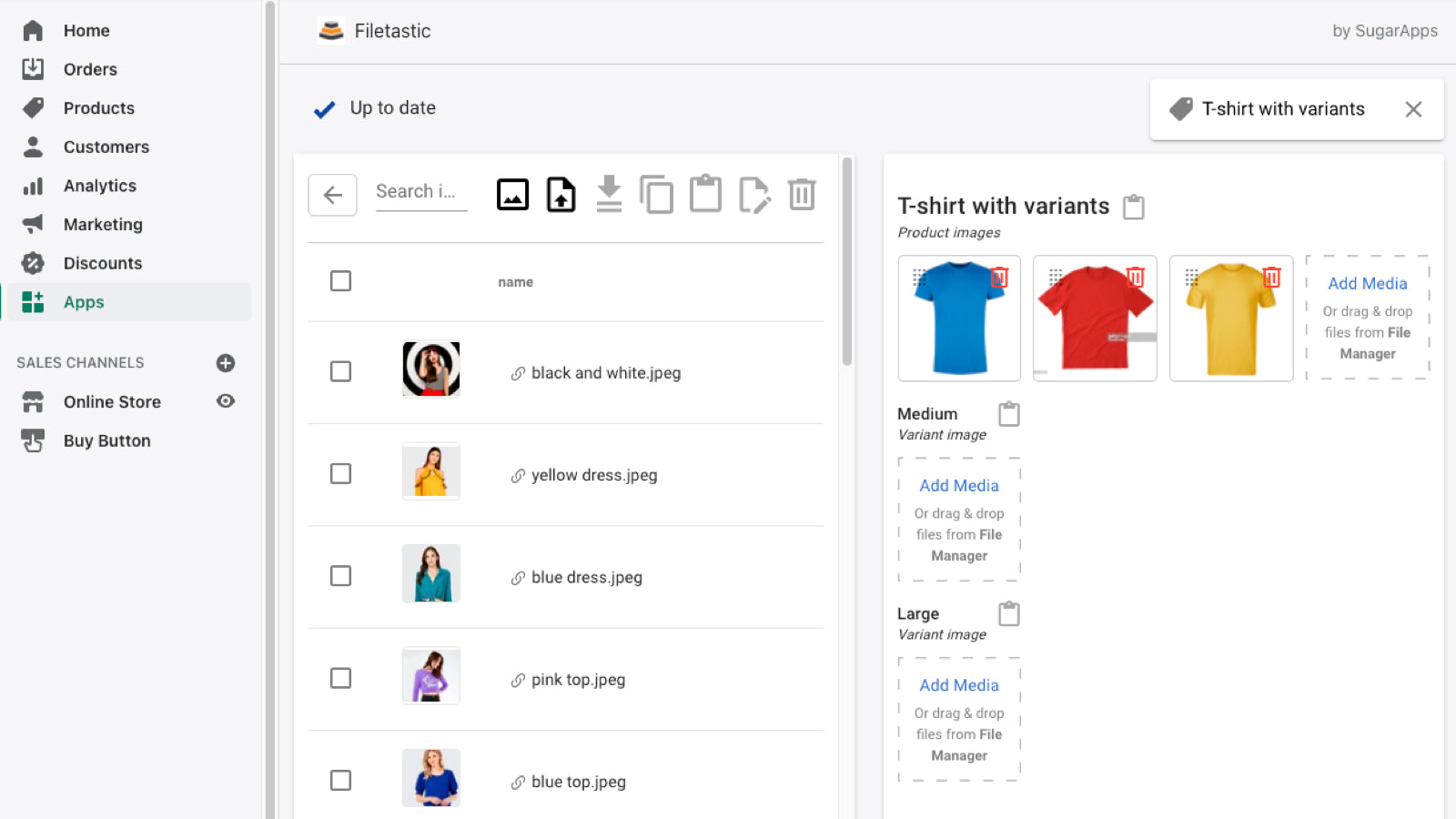 Filetastic helps you get in control of your store images and files. You don't need to use Cloud Storages like Dropbox or Google Drive anymore. You don't need to keep your shop files on your local disk either. Simply manage images and files on your store through Filetastic. Create folders, group files, download images, edit their SEO (alt text), and upload images to your products, collections and articles with ease. Don't lose track of your files and images anymore.