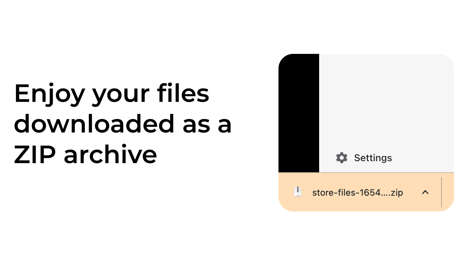 Download your Shopify store files in one click! With Filey - you will be able to download all store data files stored in the "Content -> Files" section, using only one button! Filey will let you download all files in a zip archive, keeping all the file names. So you will be able to upload and use these files in a new store, without a need to modify your theme. Now supports importing your files in a Pro plan!