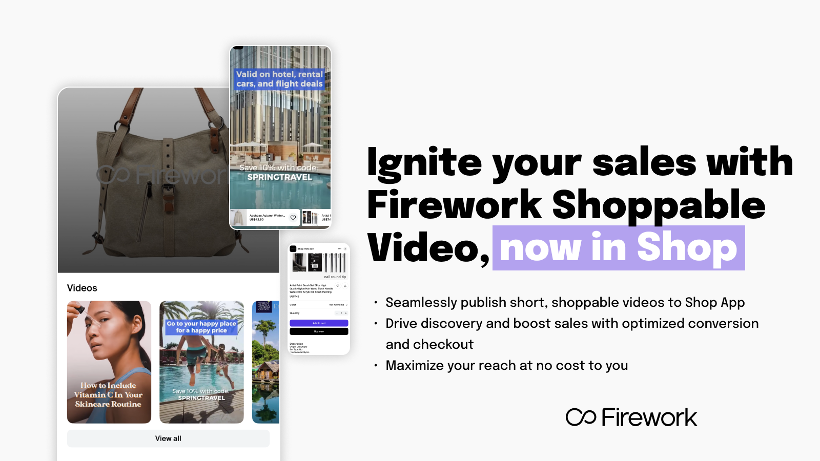 Elevate your online store and Shop App storefront with Firework’s Shoppable Video. Engage users with shoppable videos, UGC video reviews, quizzes, and polls. Quickly bulk upload videos or import from Instagram with our seamless Shopify integration. Optimize your website with floating videos, video galleries, video reviews and product detail videos for a captivating shopping journey, with zero impact to your site speed.