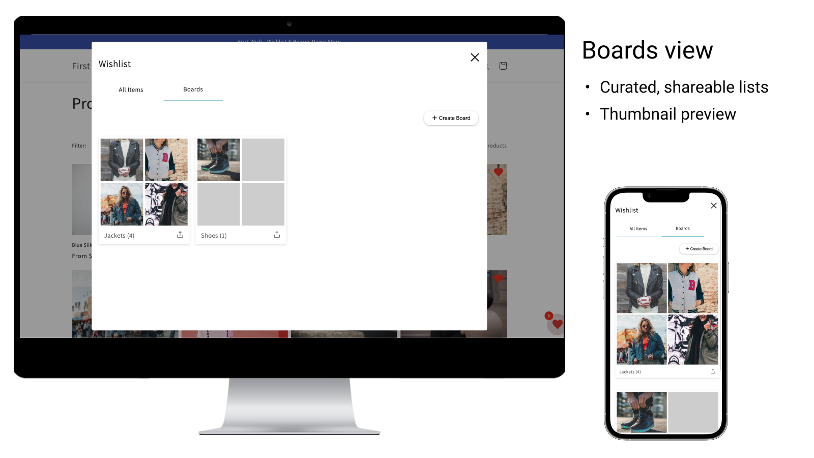 First Wish is an easy to install wishlist that works for both registered customers and visitors. Logged in customers can benefit from synchronizing their wishlist across devices. Besides saving items for later, customers can also create curated lists they can share with family and friends on social media, via email or any messaging app. Our admin dashboard provides insights into the customer's wishlists, best performing products, and activity reports.