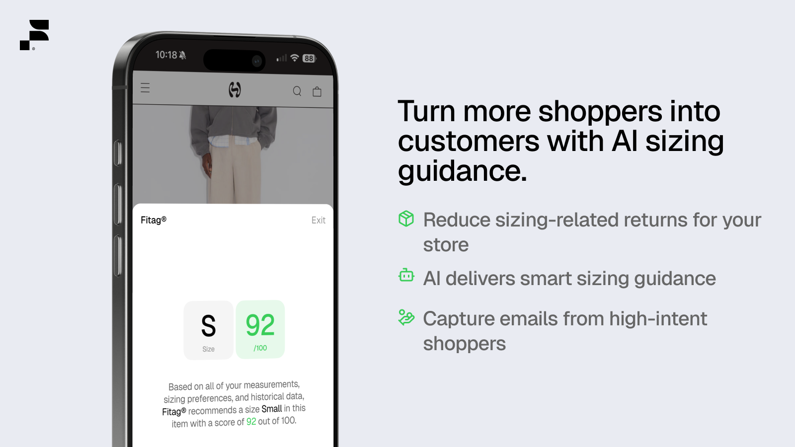 Fitag makes it easy to deliver personalized sizing recommendations for every shopper using AI. The embedded widget helps customers identify their correct fit instantly, reducing sizing uncertainty and increasing purchase confidence. In addition to size chart management and conversion tracking, Fitag also captures shopper details through email opt-in, giving brands a direct way to build their audience and generate new revenue opportunities.