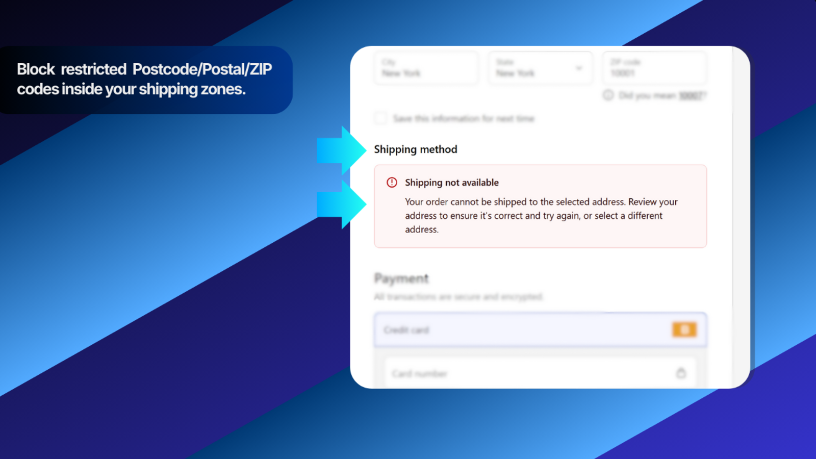 Block Postcode/Postal/ZIP codes at checkout. Stop orders to restricted regions.